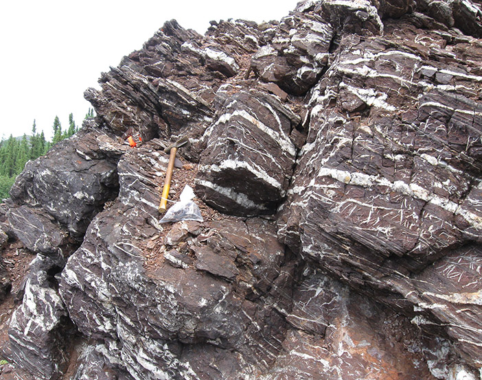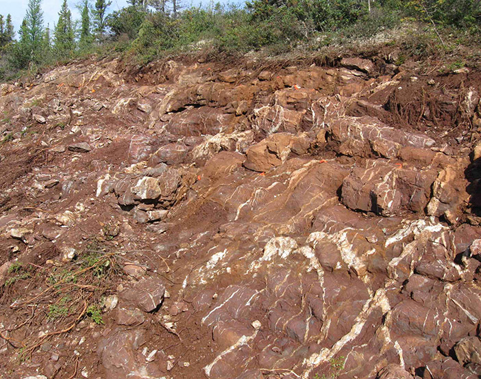 Couvre 16.5km de stratigraphie favorable. Aucune technique moderne n’y a été appliquée. Les derniers travaux sur l’indice datent de 1956.