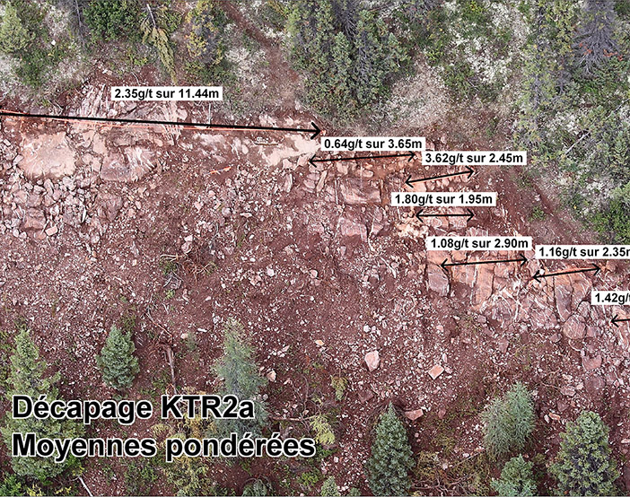 Avancement Tranchées: jusqu’à 8.9g/t/8.45m